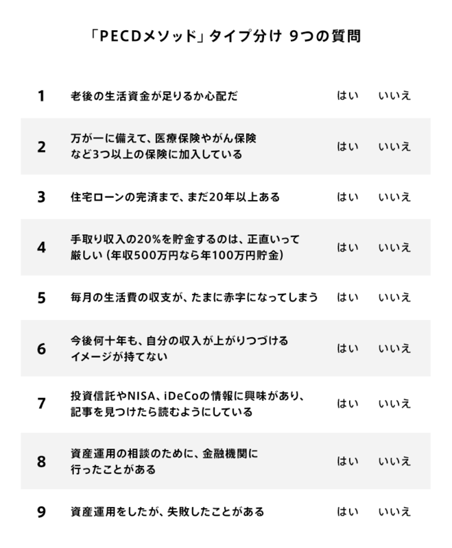 ではまず、自分のタイプを診断してみようか。次の「9つの質問」に、「はい」か「いいえ」で答えてみてもらえるかな?