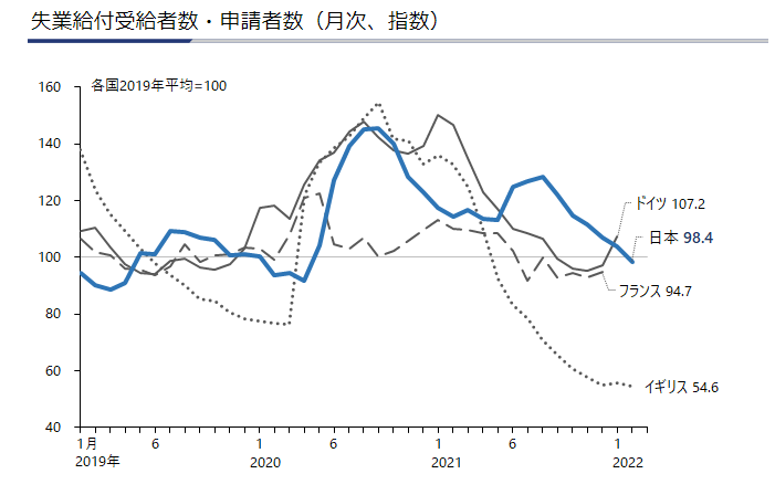 1つ目は新型コロナウイルス感染症の拡大防止のために支給された雇用調整助成金の特例の影響です。雇用調整助成金は労働者に対して一時的に休業、教育訓練または出向を行い、労働者の雇用の維持を図った場合に休業手当や賃金等の一部を助成する制度です。