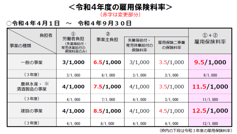 2022年(令和4年)4月から、事業主負担の保険料率が変更