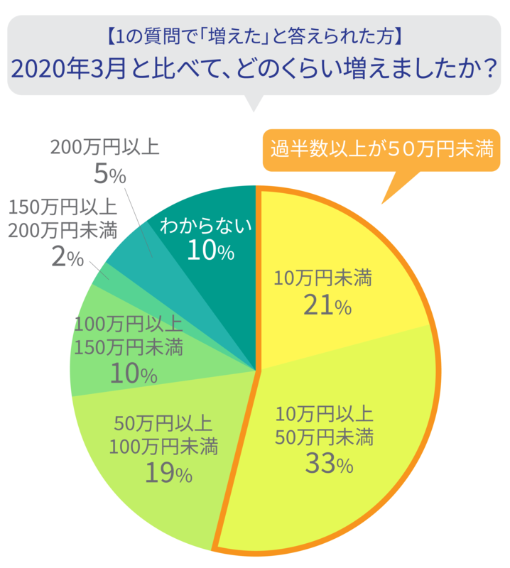 貯金が増えた方の過半数以上は、50万円未満ということになります。