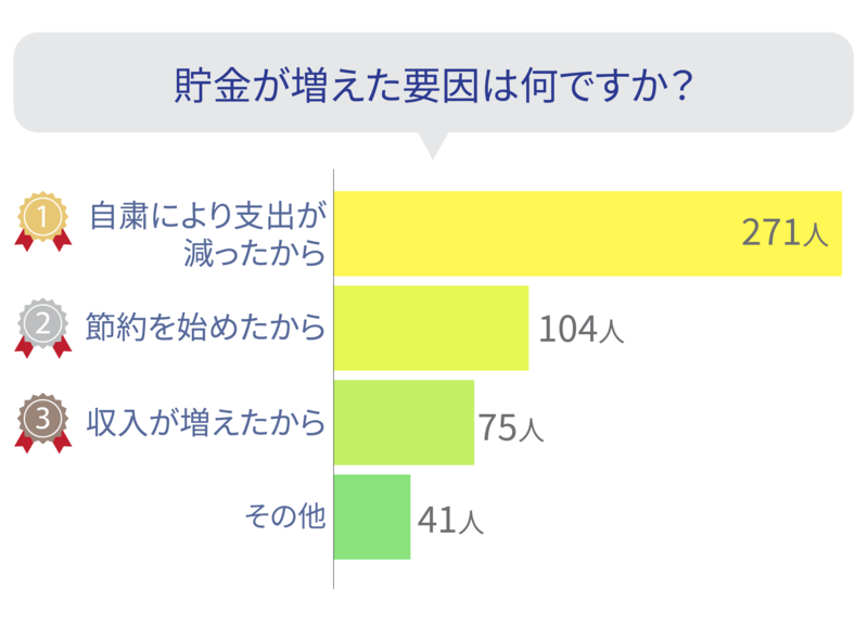 最も多かった要因は、「自粛により支出が減ったから」でした。