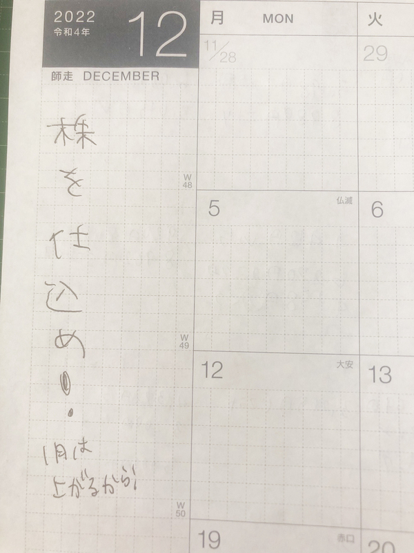 そういえば、この記事を書いている年末、手帳の12月のページを開いたらこんなことが記入してありました。
