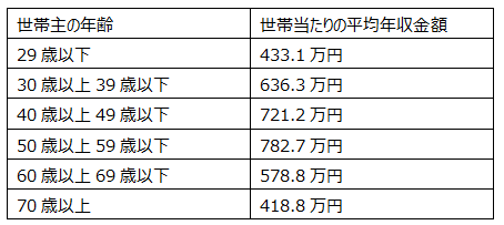 このように世帯の状況によって収入は変わります。以下が年齢階級別(世帯主の年齢別)の収入(所得)の状況です。