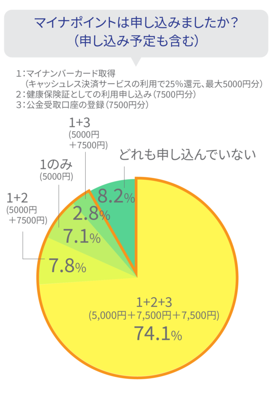 マイナンバーカード取得(申請)した方の7割は、上記3つ全てを合わせて2万円分のポイントがもらえるように申請していました。