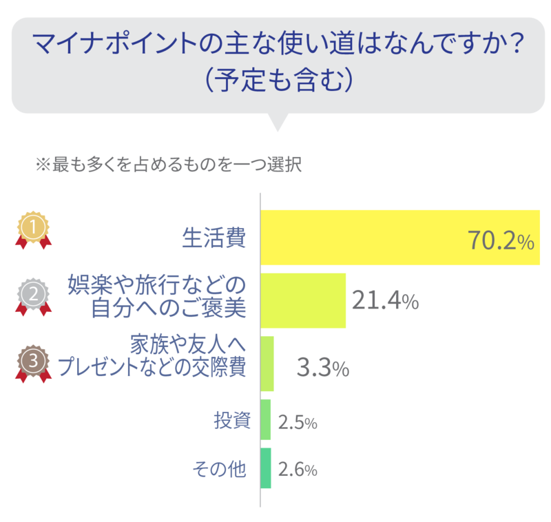 今回の調査では、ほとんどの方が「生活費」と回答しました。現在様々な物が値上がりしており、家計負担が増えています。そのため、このマイナポイントも生活費に充てた方が多いのではないかと考えられます。