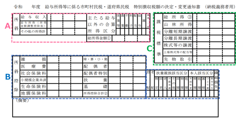存在感が薄い住民税決定通知書ですが、ここには意外と大切な内容が記されています。大まかで良いので内容を知っておくと良いでしょう。