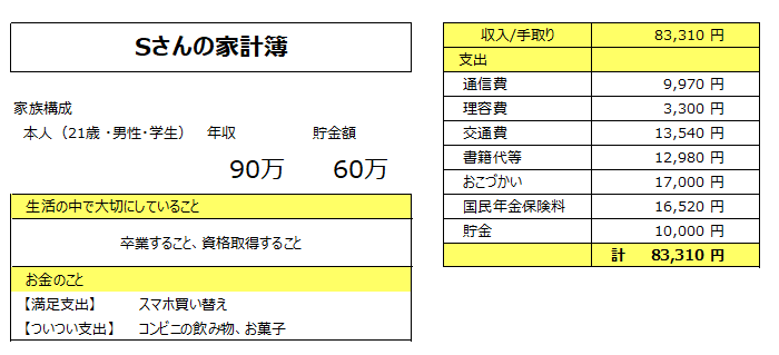 FPオフィス「フォルテシモ」へ依頼されたお客さまの家計簿をmymoで診断する【うちの家計簿】。今回は21歳の男子学生で、アルバイトをしているSさんの家計簿です。大学生の場合、親の扶養に入っている方も多いと思いますが、アルバイトで一定の年収を超えると扶養控除から外れます。今回は学生のアルバイトにおける税金や、扶養控除に関わる「103万円、130万円の壁」について解説します。