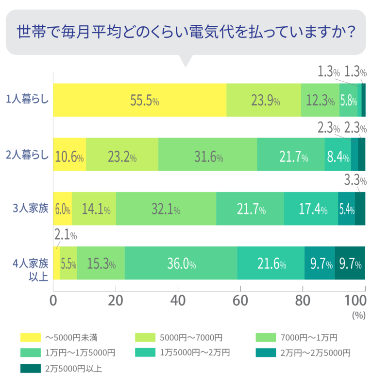 まず、世帯別に、毎月どのくらい電気代を払っているのかおたずねしました。