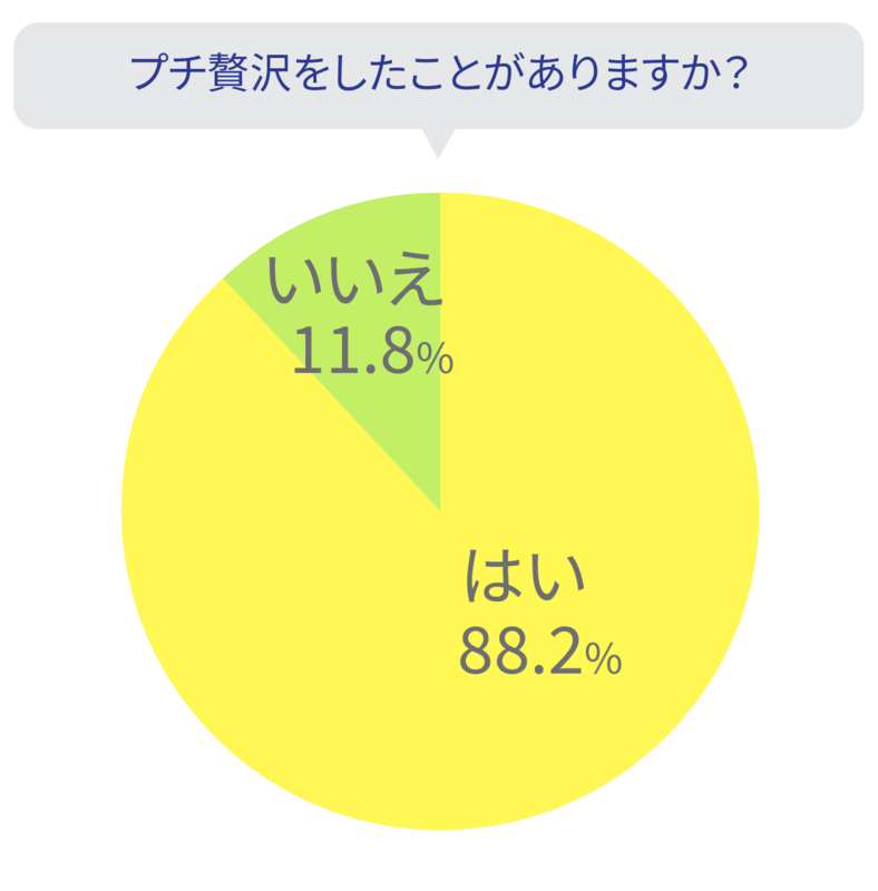 今回の調査では、プチ贅沢をしたことがあると回答した人は88.2%、全体の9割弱でした。