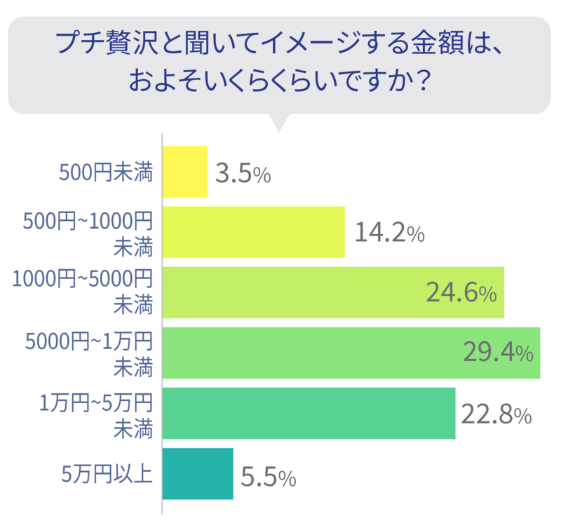 プチ贅沢と聞いてイメージする金額は、「5000円~1万円未満」と答えた方が29.4%と最も多くなりました。