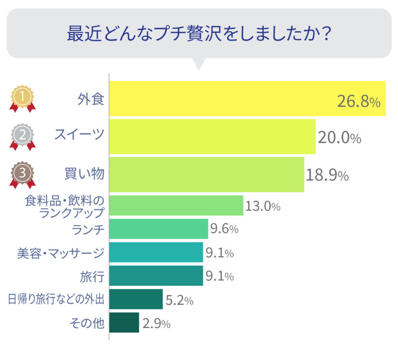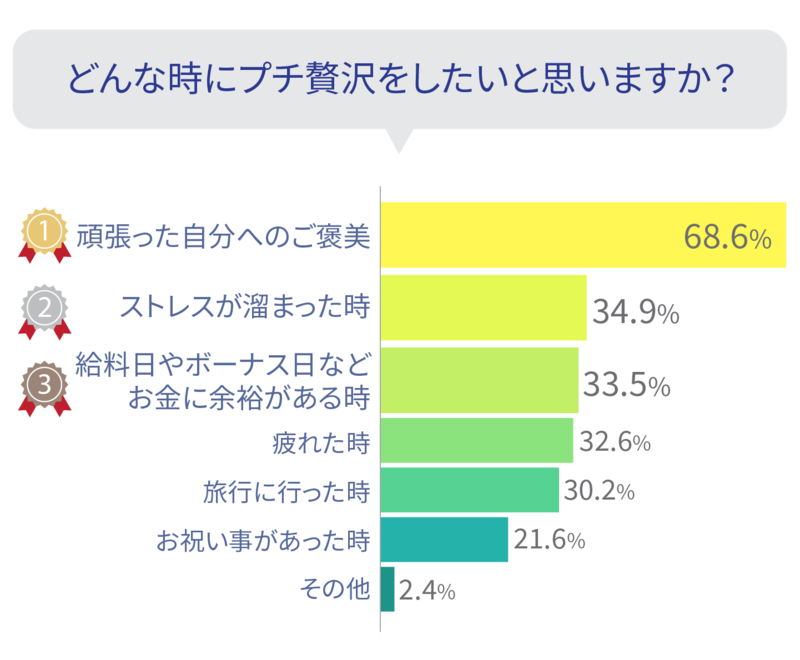 今回の調査では、多くの方が自分へのご褒美や気分転換のためにプチ贅沢を楽しんでいることが分かりました。