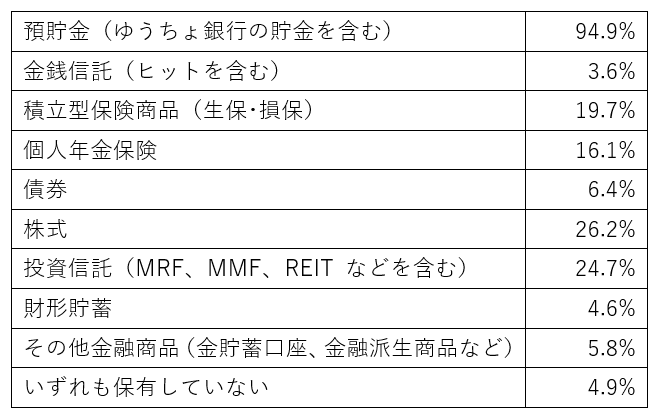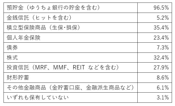 金融広告中央委員会の「家計の金融行動に関する世論調査2023年」を見ますと、各世帯がどのような金融資産を有しているのか分かります。