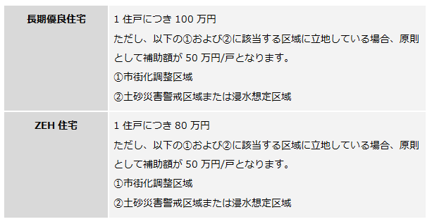 子育てエコホーム支援事業で得られる補助額は住宅種別に応じて、以下のように異なります。