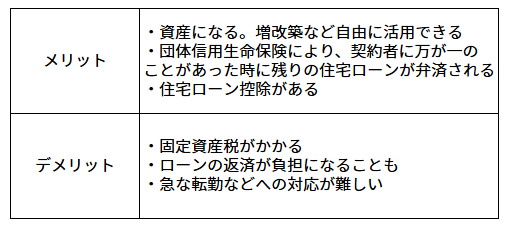 最初に、一般的な持ち家と賃貸のメリット・デメリットを整理してみましょう。持ち家は住宅ローンでの購入を前提とします。