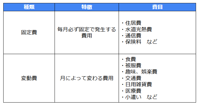 支出は、「固定費」と「変動費」の大きく2つに分けられます。