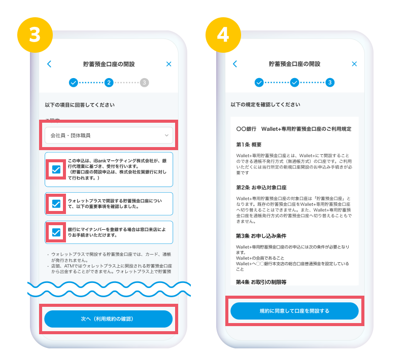 4.規約確認後、「規約に同意して口座を開設する」をタップ