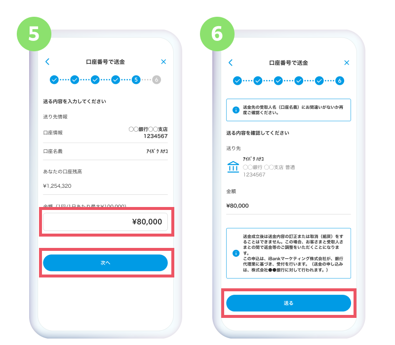 6.送金内容に誤りがなければ「送る」をタップし送金完了