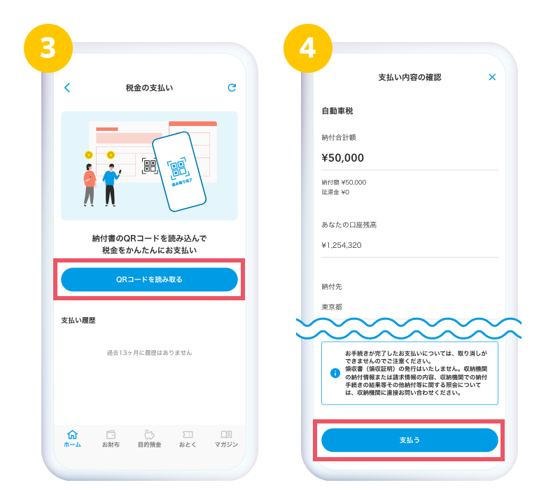 3.「税金を支払う」をタップすると、以降同様の手順でご利用いただけます