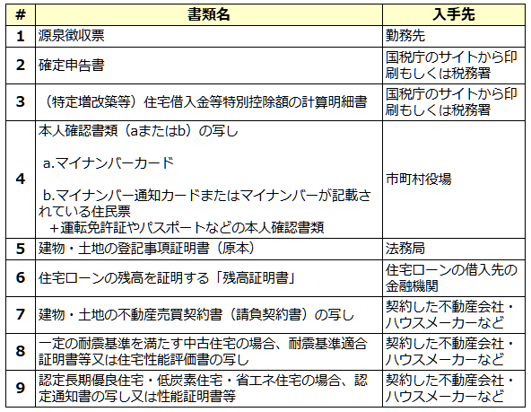住宅ローン控除の確定申告に必要な書類は多岐にわたります。準備をするのに時間を要するものがありますので、早めに準備に取りかかりましょう。ちなみに準備する書類は一般的には、以下の通りです。