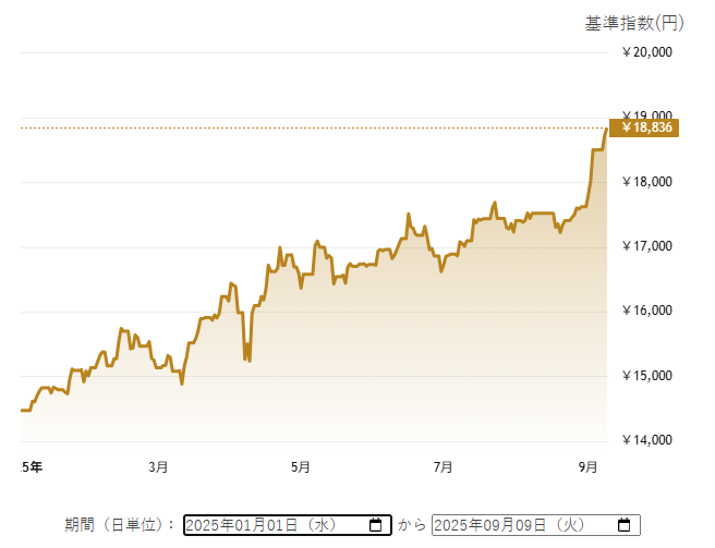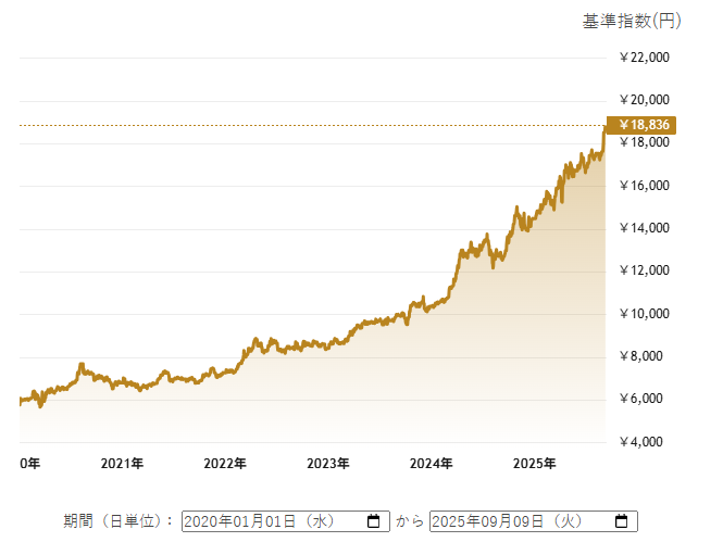 株式投資をしている方なら、S&Pやオルカン(オールカントリー)などのインデックス型投資信託でよく目にする「右肩上がりのチャート」です。ただ、投資信託と金で大きく異なる点に、構成銘柄の変更があります。
