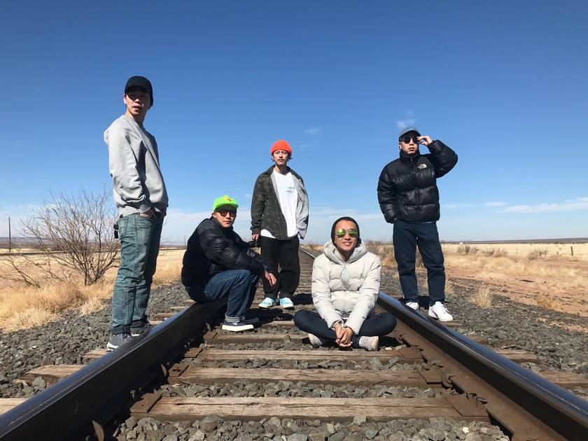 大学の最終学年で絵とTシャツ作りを同時に始めたんですけど、その後、大学の仲間がビートを作ってきたのをきっかけに、相方やタイシも一緒に曲を作ったりリリックを書いたりをやり出して。それがヒップホップ・グループ「週末CITY PLAY BOYZ」の始まりです。イベントに出たりして、卒業後には、ちょこちょこライブに呼んでもらえるようにもなりました。その活動もアメリカ旅行を機に変わりました。僕とタイシが旅に出ている間、相方とリーダーのユースケ(BUGS)の2人が新しいビートを作ってくれていて、帰国組が作ったリリックと重ねることで、ものすごく面白いものが生まれたんです。