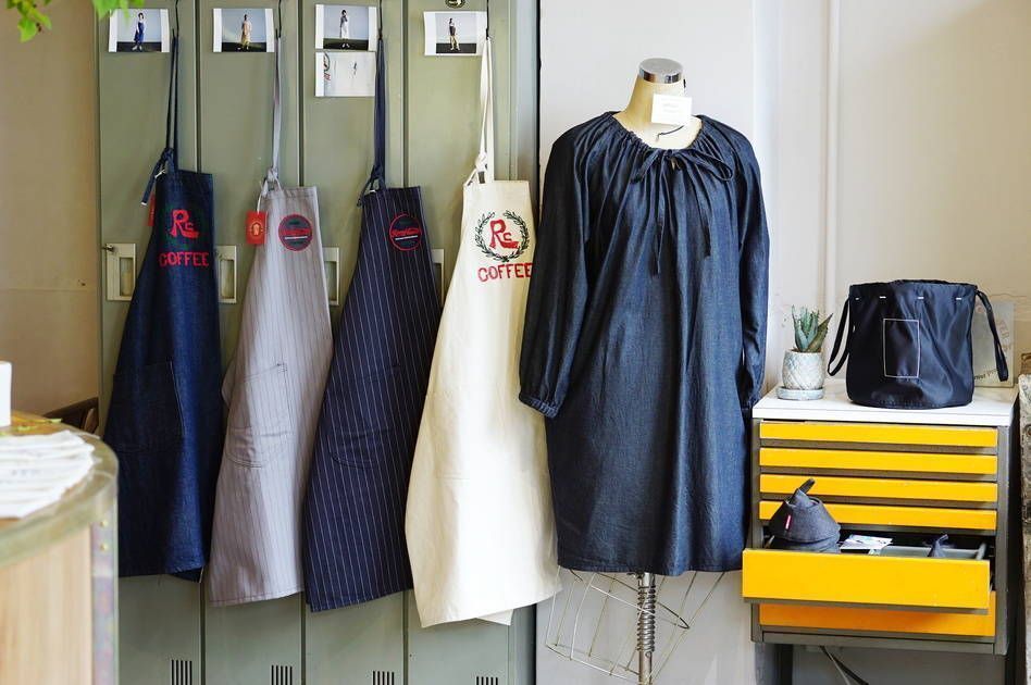 【現在はオリジナルエプロンやアパレル商品などを販売。これからコーヒー関連のプロダクトも増えていく予定】