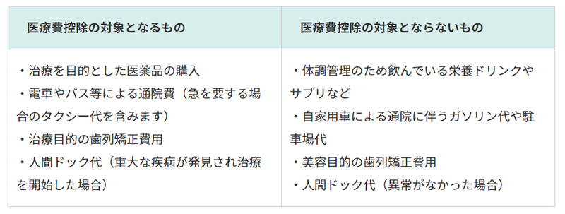 仕事中、頭痛が気になってドラッグストアに行き、頭痛薬を購入した場合の購入額は医療費控除の対象となります。一方、今日は残業で遅くなりそうだからとドラッグストアで栄養ドリンクを買っても、これは治療が目的ではないため、医療費控除の対象とはなりません。